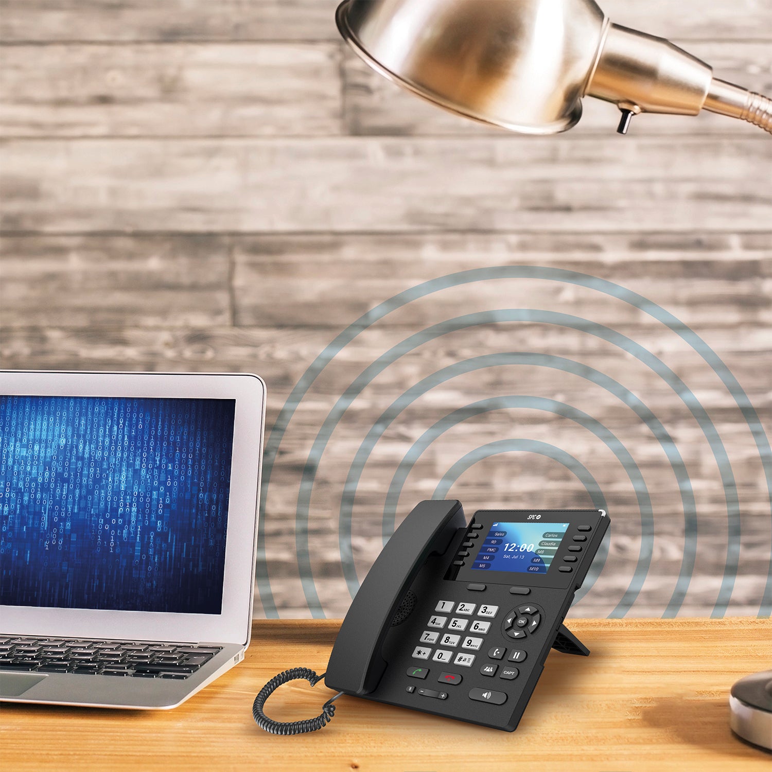 Cuenta con conectividad 4G y es compatible con VoLTE y VoWiFi, permitiendo realizar llamadas de alta calidad incluso sin cobertura móvil, a través de red WiFi. Este teléfono fijo con tarjeta sim incluye función manos libres, luz indicadora de llamada y una calidad de audio adaptada al entorno profesional.
