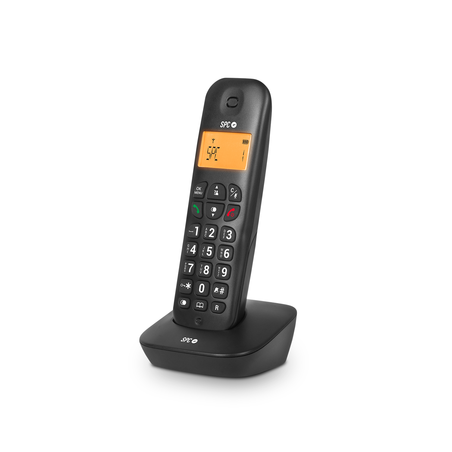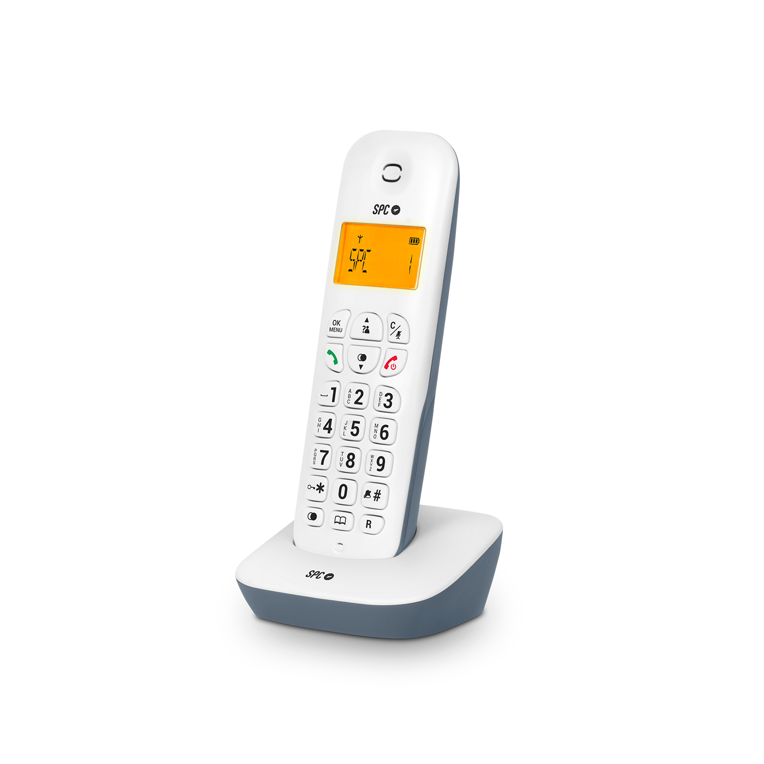 SPC AIR es un teléfono inalámbrico sencillo con pantalla retroiluminada en tono ámbar, color que garantiza un buen contraste de los dígitos en pantalla para una óptima legibilidad tanto de día como de noche.